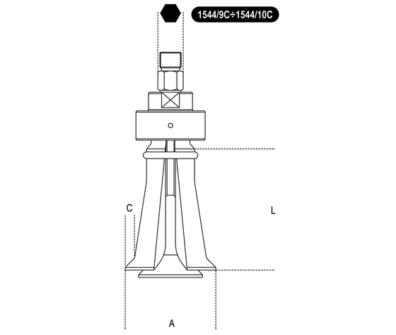 Manovrando la vite di regolazione, si fa presa sull’ estremità opposta del pezzo da estrarre (cuscinetto, bronzina, bussola, camicia…) attraverso l’espansione dei settori.